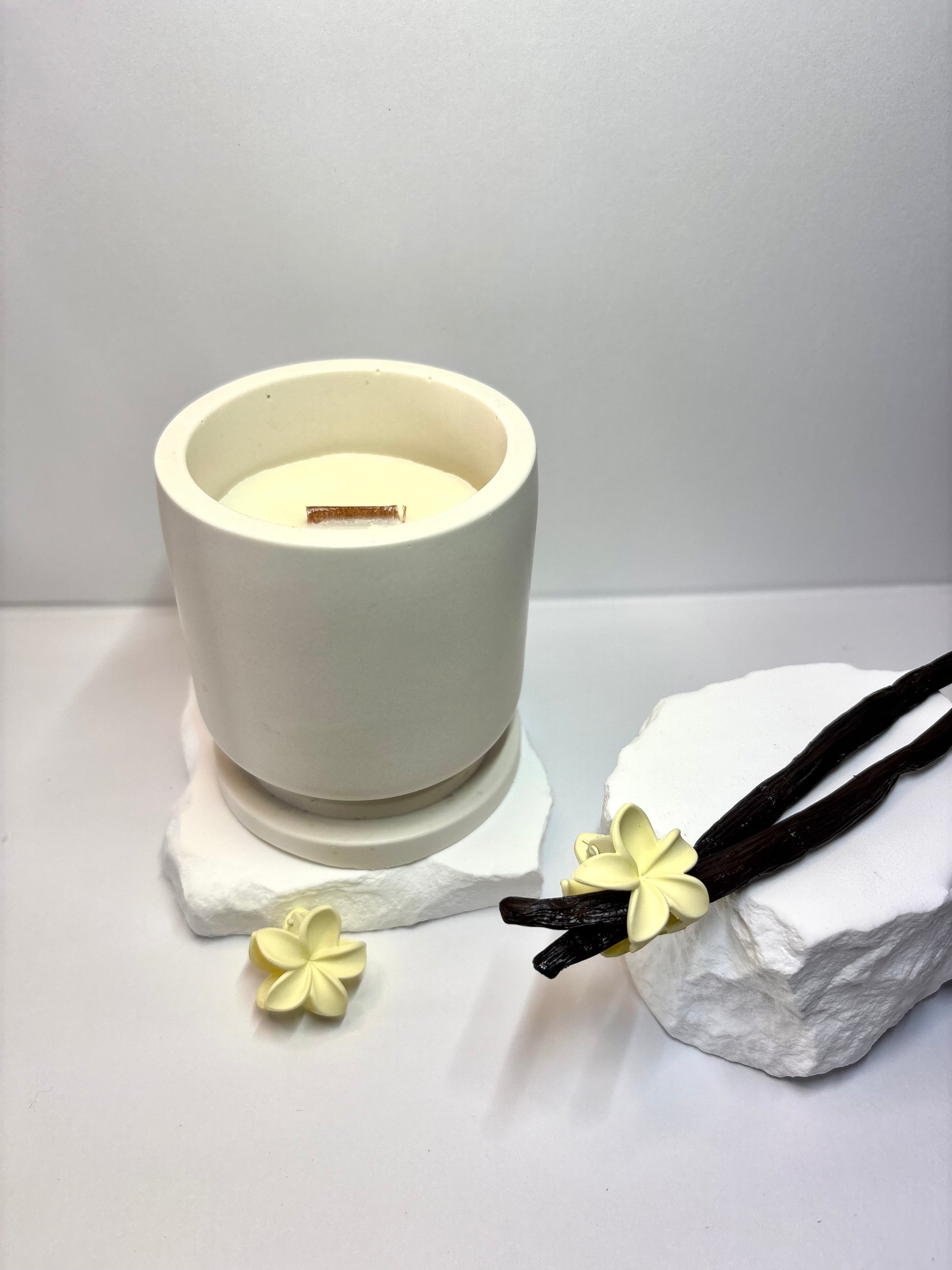 Découvrez notre ensemble artisanal composé d’un pot en jesmonite fait main et de blocs de cire parfumés spécialement conçus pour s’y adapter. Chaque pièce est réalisée avec soin dans notre atelier, garantissant un objet unique et durable pour sublimer votre intérieur.